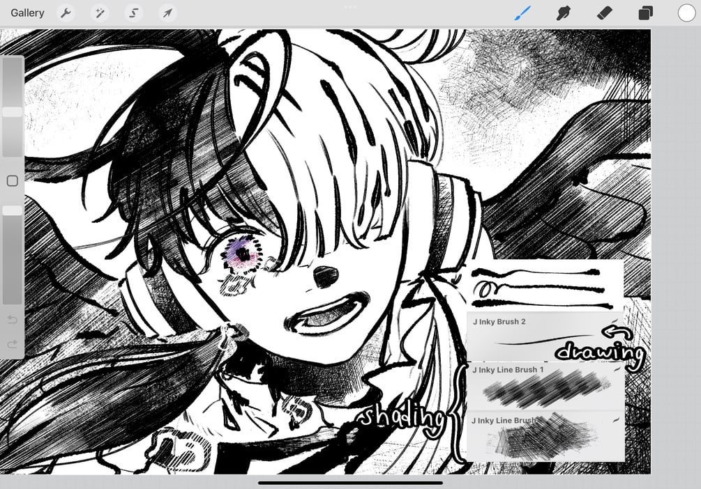 It has 2 Inky brushes and 5 screen tone brushes in this set!